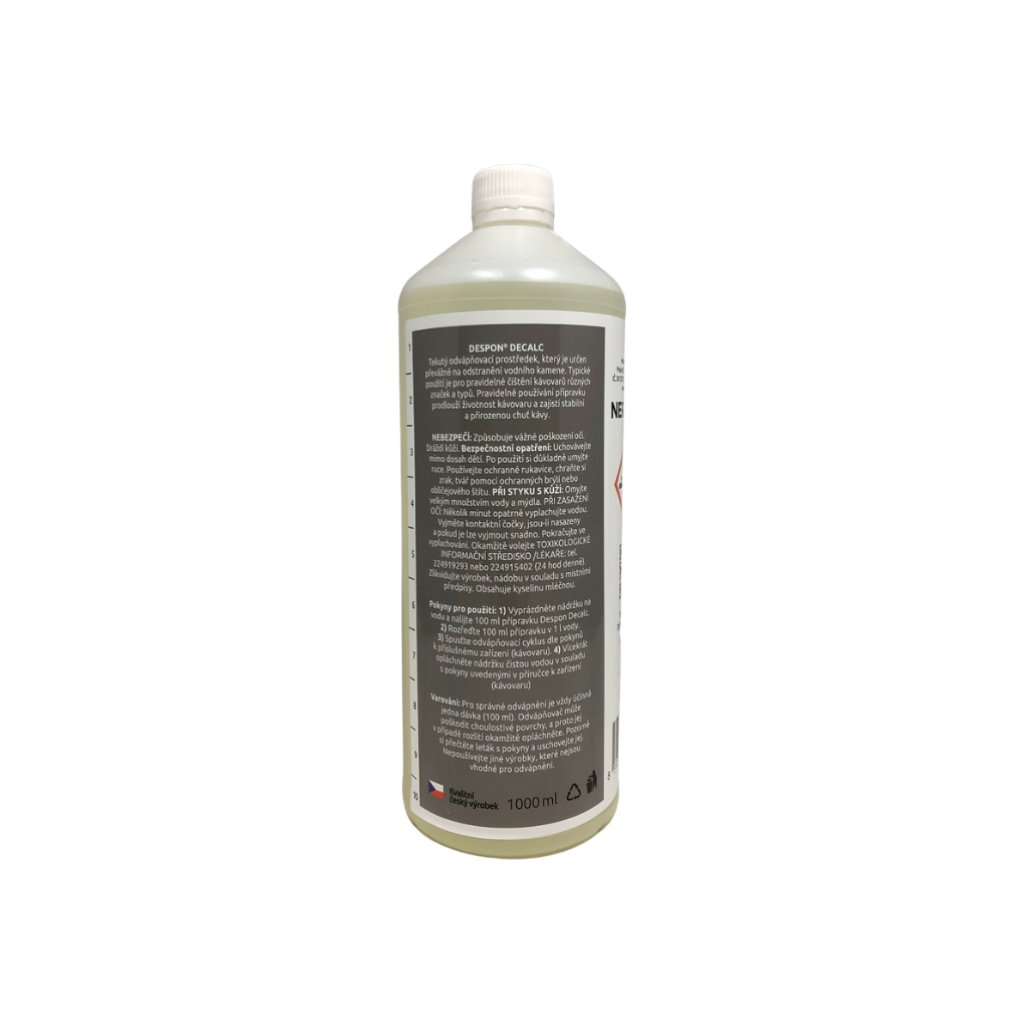 Kvalitní český tekutý univerzální odvápňovač pro domácí i profesionální průmyslové použití. Tekutý odvápňovací prostředek, který je určen převážně na odstranění vodního kamene. Typické použití je pro pravidelné čištění kávovarů různých značek a typů. Pravidelné používání