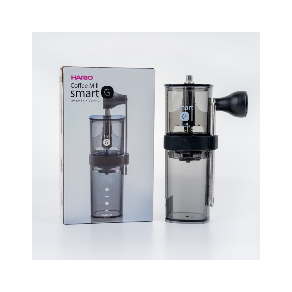 Hario Smart G – Transparent je ruční mlýnek s moderním designem. Uvnitř má keramické kameny, které můžete nastavit tak, aby vaše káva byla dokonale namletá.